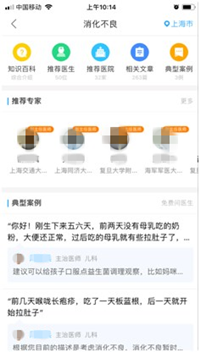 ①按疾病找:选择疾病后,会显示该疾病的知识百科、推荐医生、推荐医院、相关文章、典型案例等。