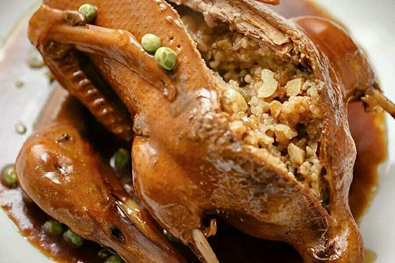 很有名的一道本帮菜,也是上海年夜饭的一道硬菜!做起来比较复杂,要在鸭子的肚子里面塞上很多“宝”,包括糯米、冬笋、火腿、五花肉、马蹄、板栗之类的,然后煮上几个小时!