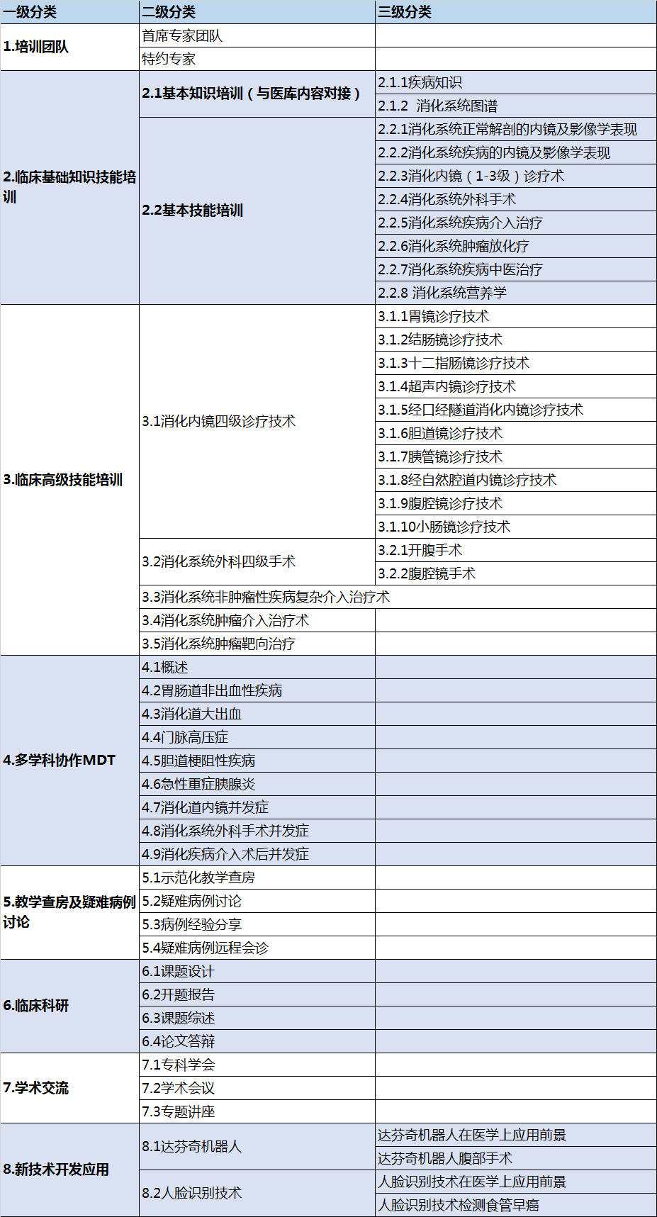 《消化专栏》主要包含了8大板块,体系内容详见下图,体系分为五级,非常细致具体,这里展示前三级分类: