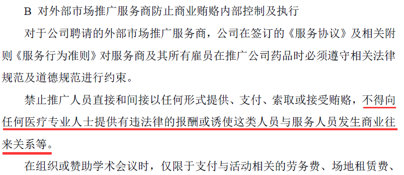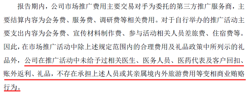 在招股说明书,公司防范商业贿赂相关内部控制及执行情况中,公司表示在内部销售及外部市场推广服务商都有严格的防止商业贿赂的程序。